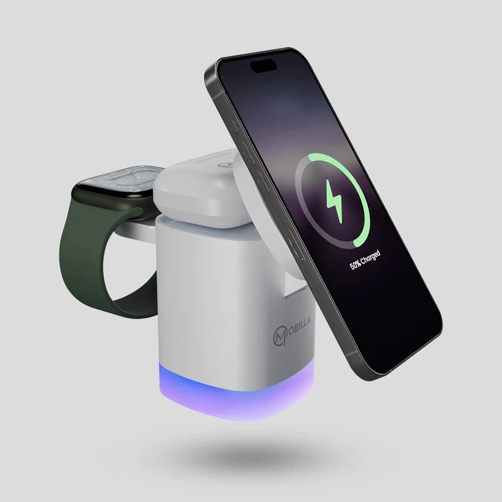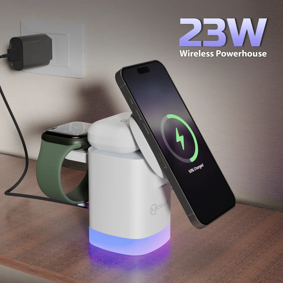 3 in 1 Wirless Charger | 23W Wirless Charging | MagSafe Compatible | 2 RGB Light Modes | Compact & Portable Design | Sleek Design | Strong Magnet | Secure Charging