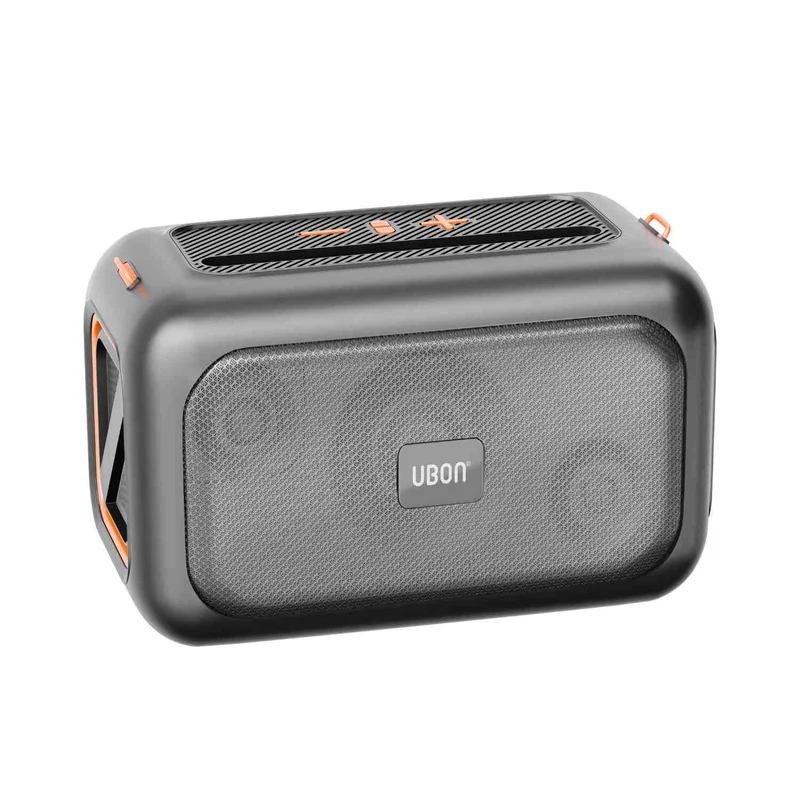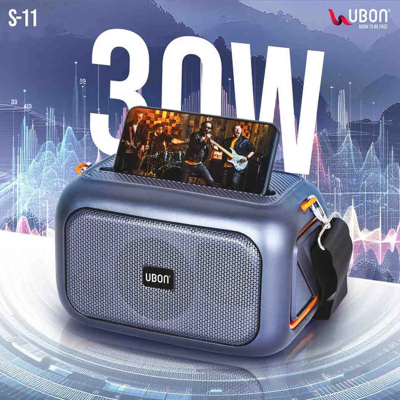 UBON S-11 30W Bomber offers 4 hours playtime, powerful bass, FM radio, mic input, USB/TF support, built-in stand, and portability in 2 stylish colors.